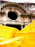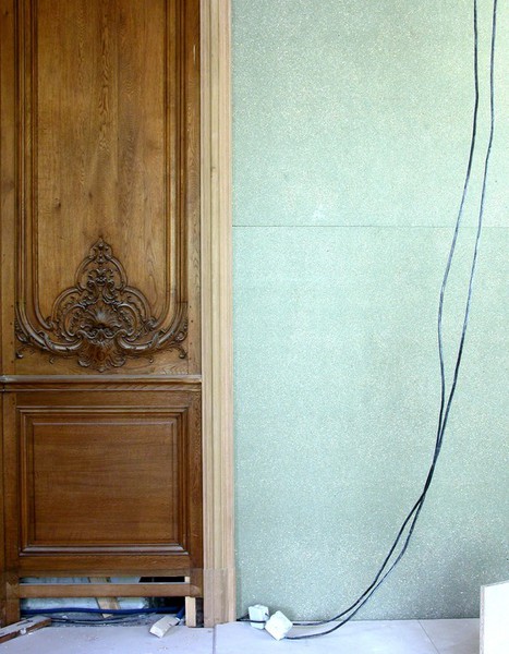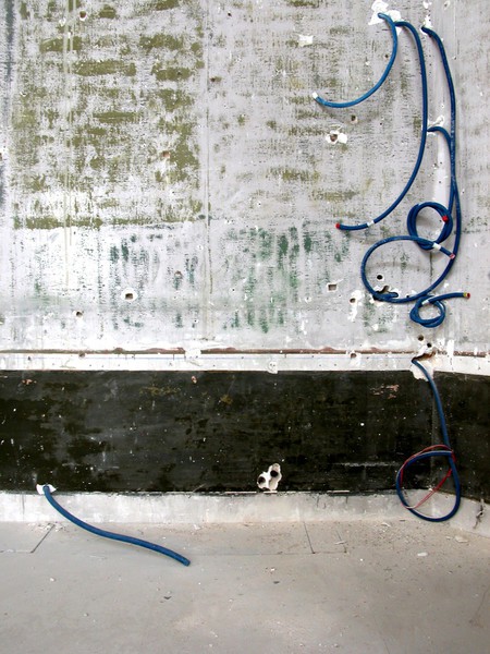 "Hélène Langlois choisit les couleurs, les tons surannés des murs écorchés, les oranges et les bleus vifs des matériaux de chantier. Elle traque dans ce gigantesque décor déserté par les ouvriers les