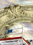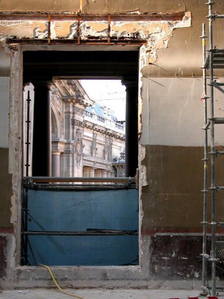 "en chantier" immortalise la mue du Petit Palais au début des années 2000. Dans ces photographies, Hélène Langlois affiche aux yeux du monde des instants suspendus, ceux qui se cachent entre et derrière les portes closes. Une version visuelle d’"En attendant Godot", où le changement point sans jamais advenir."