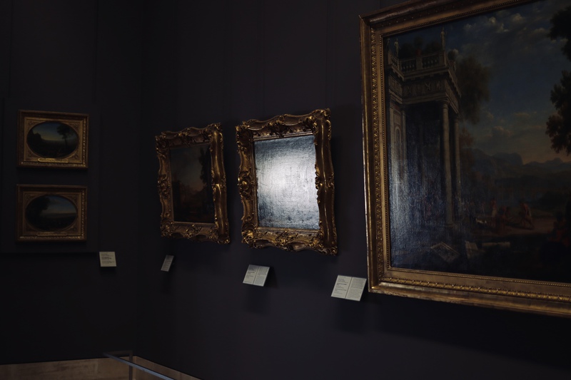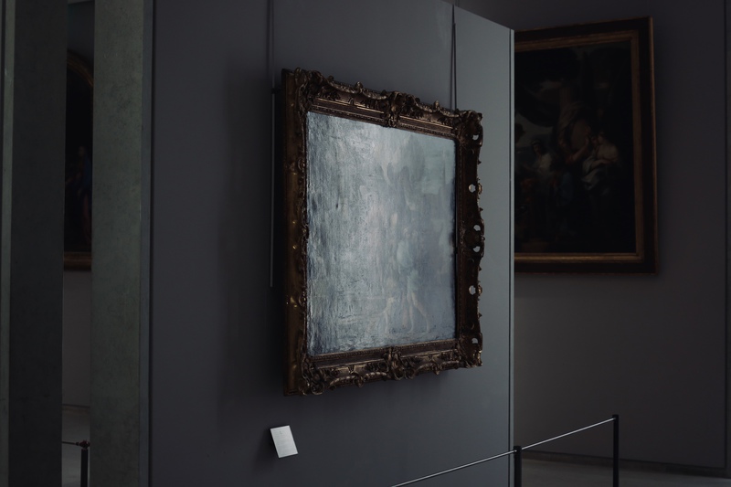 Des reflets et brillances sont capturés à la surface des toiles du Louvre. Les peintures séculaires deviennent alors un théâtre d’apparitions : les compositions abstraites, créées par les halos et trainées de lumière, dialoguent avec les pigments anciens sans jamais les effacer totalement.